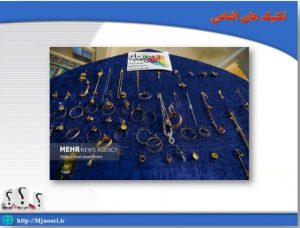 مثال: این تصویر تعداد زیادی از قطعات طلا و جواهرات را نشان میدهد و برچسبی که در بالای تصویر قرار دارد و نام پویش «ایران همدل» و هدف کمک به مردم مظلوم فلسطین و لبنان را مشخص میکند.