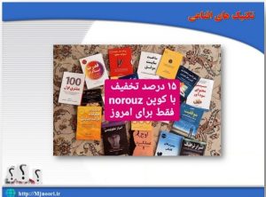 مثال: این تصویر مجموعهای از کتابها را نشان میدهد که به موضوعات مرتبط با کسبوکار، بازاریابی، و موفقیت در حوزه اینترنتی و کارآفرینی اختصاص دارند. در مرکز تصویر، با استفاده از یک برچسب صورتی روشن نوشته شده است: “15 درصد تخفیف با کوپن norouz فقط برای امروز”.