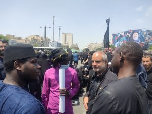 در مسیر چند فرد از ملیتهای دیگر را میبینیم و از آنها عکس میگیریم یکی از آنها که فارسی بلد است میگوید شهید رییسی چون شهید سلیمانی مرد میدان بود.