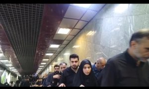 مترو در ایستگاهی دروازه شمیران میایستد. با راهنمایی پیرمردی سالخورده در ایستگاه پیاده میشویم و مسیر عوض میکنیم. ردپای جمعیت را که برای تشییع پیکر پاک شهدا آمدهاند در مترو میبینیم. این خط مترو هم پر از مسافر است و انبوه مسافران که همه میخواهند به تشییع شهدا بروند هر لحظه بیشتر میشود.